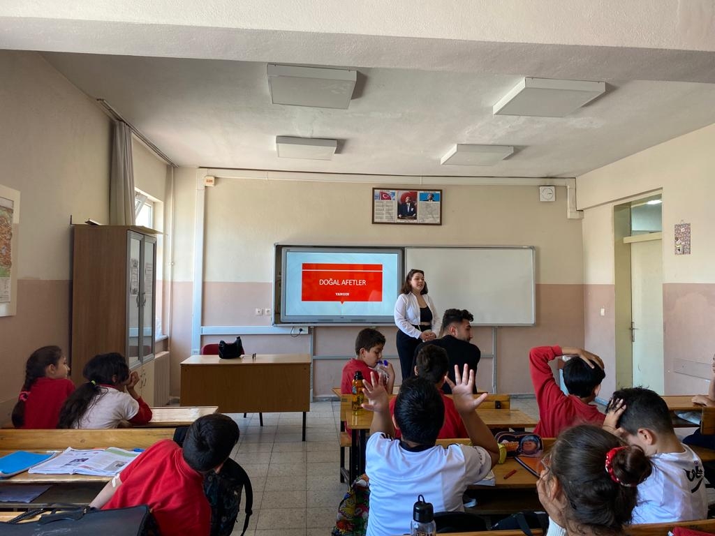 Topluma hizmet uygulamaları dersi kapsamında yürütülen “Doğal Afetleri Tanıyalım, Önlemimizi Alalım” başlıklı projeyi Doç. Dr. Ahmet Volkan YÜZÜAK danışmanlığında; Dilara Sıla ŞENAL, Ayça USLU, Serhat ŞİMŞEKSOY, Serhat YÖRÜK ve Ümit AKIN ile birlikte 03.06.2023 tarihinde Bartın Necip Fazıl Kısakürek Ortaokulu’nda Sular Çoğalsın, Yardımlaşma Başlasın etkinliği gerçekleştirildi. Çocuklara yangın ile ilgili bilgi verildi. Yangın anında, öncesinde ve sonrasında olmak üzere çocuklarla soru cevap yaparak bilgi verildi. Daha sonra yardımlaşma ile ilgili olan etkinlik gerçekleştirildi.
